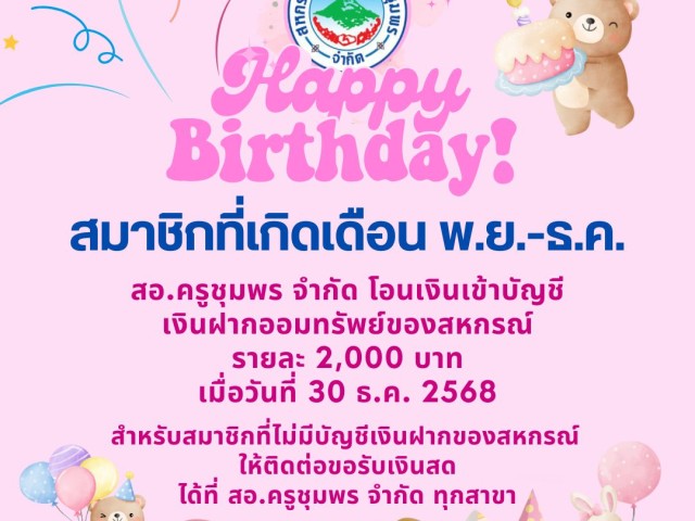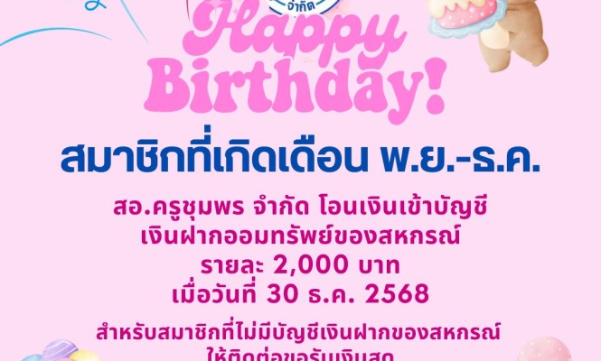 สวัสดิการปันสุขวันเกิด ประจำปีบัญชี 2569 (เดือนพฤศจิกายน-ธันวาคม 2568)