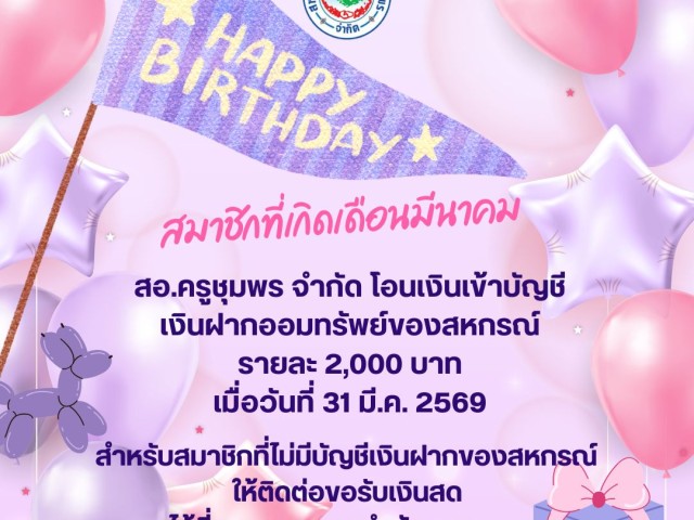 สวัสดิการปันสุขวันเกิด ประจำปีบัญชี 2569 (เดือนมีนาคม 2569)