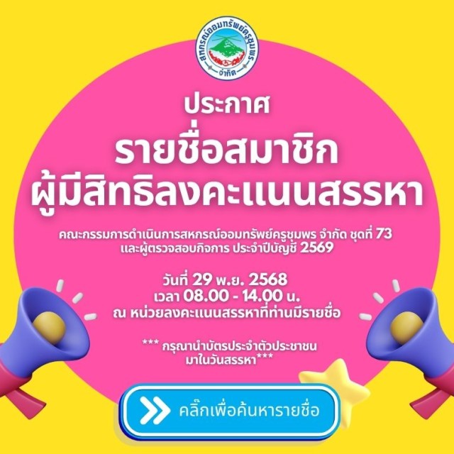 ติดต่อสหกรณ์โทร 077-596-762-3 และ 077-596-673-4
