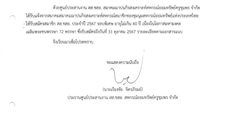 การรับสมัครสมาชิก สส.ชสอ. ประจำปี 2567 รอบพิเศษ อายุไม่เกิน 60 ปี