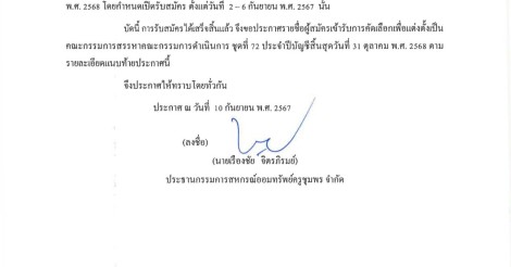 รายชื่อผู้สมัครเข้ารับการคัดเลือกเพื่อแต่งตั้งเป็นคณะกรรมการสรรหาคณะกรรมการดำเนินการ ชุดที่ 72 ประจำปีบัญชีสิ้นสุดวันที่ 31 ตุลาคม พ.ศ. 2568
