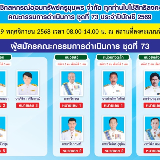 รายชื่อผู้มีสิทธิเข้ารับการสรรหาเป็นคณะกรรมการดำเนินการ ชุดที่ 73 ประจำปีบัญชีสิ้นสุดวันที่ 31 ตุลาคม พ.ศ. 2569
