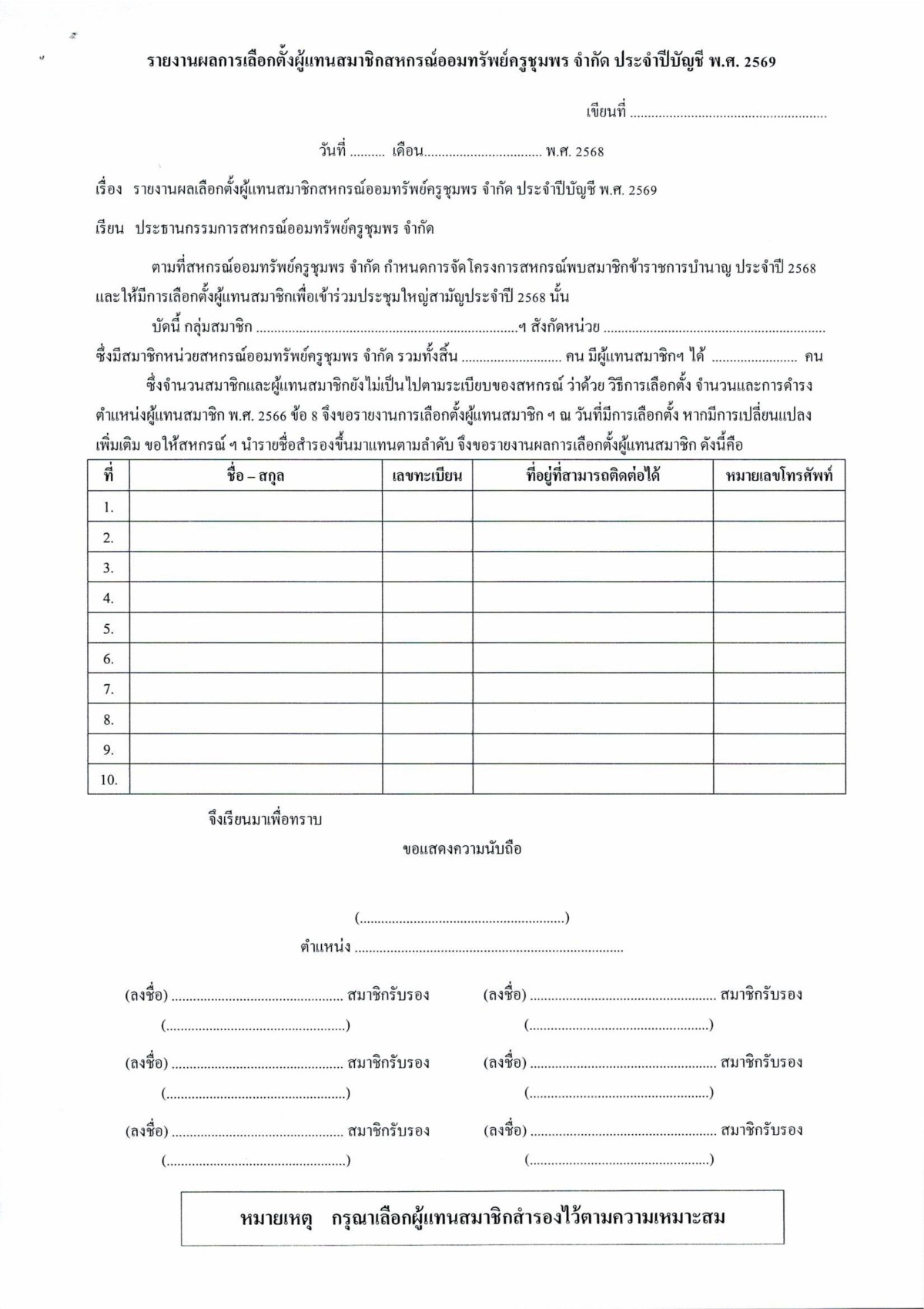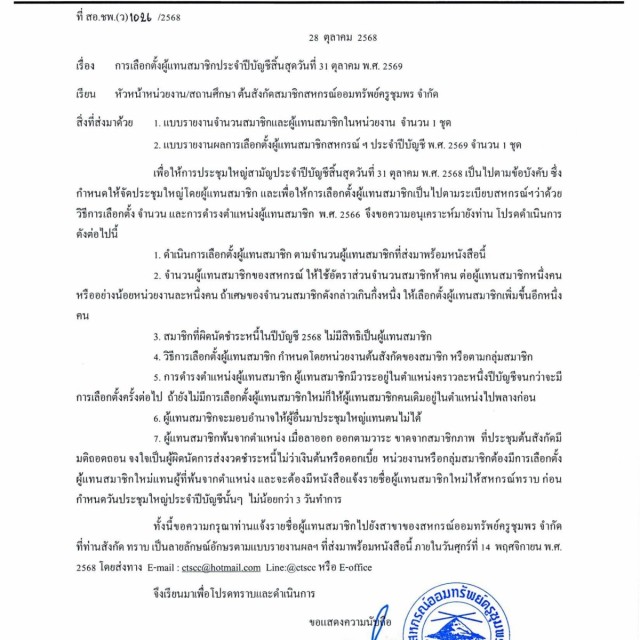 การเลือกตั้งผู้แทนสมาชิก ประจำปีบัญชีสิ้นสุดวันที่ 31 ตุลาคม พ.ศ. 2569