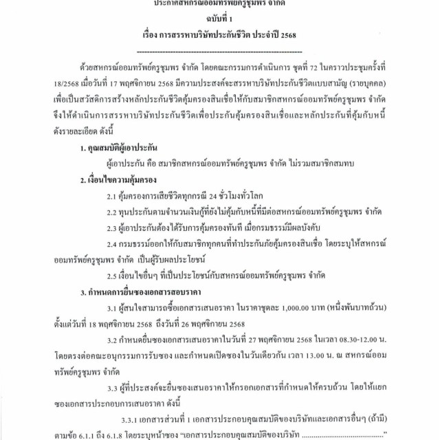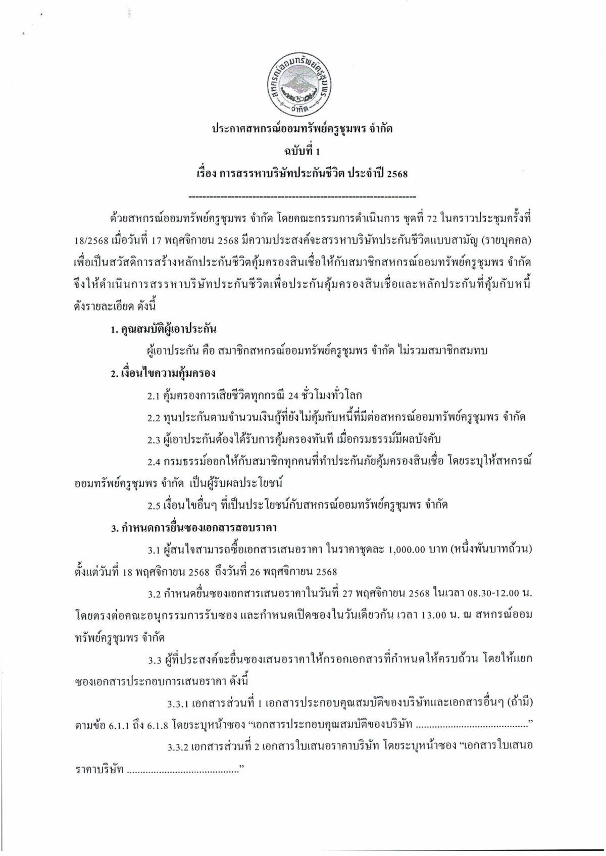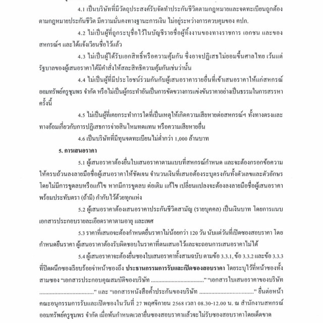 การสรรหาบริษัทประกันชีวิต ประจำปี 2568
