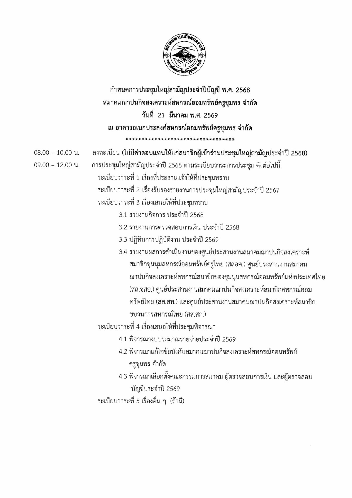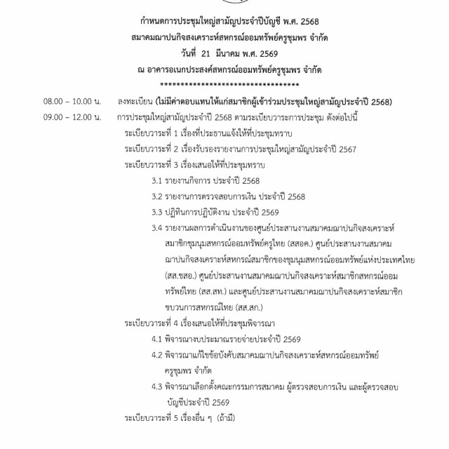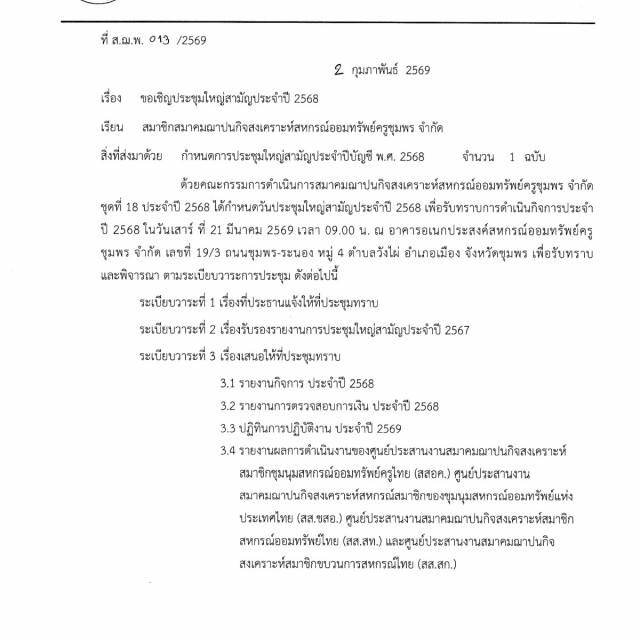 สมาคมฯ ขอเชิญประชุมใหญ่สามัญประจำปี 2568