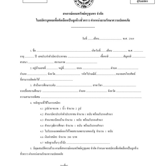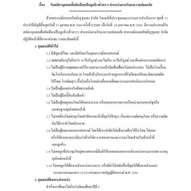 รับสมัครบุคคลเพื่อคัดเลือกเป็นลูกจ้างชั่วคราว ตำแหน่งยามรักษาความปลอดภัย