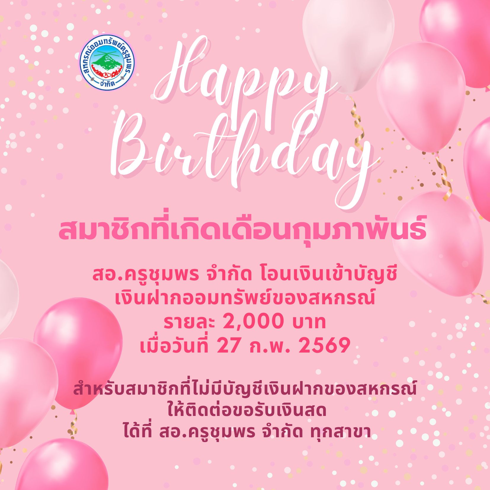 สวัสดิการปันสุขวันเกิด ประจำปีบัญชี 2569 (เดือนกุมภาพันธ์ 2569)