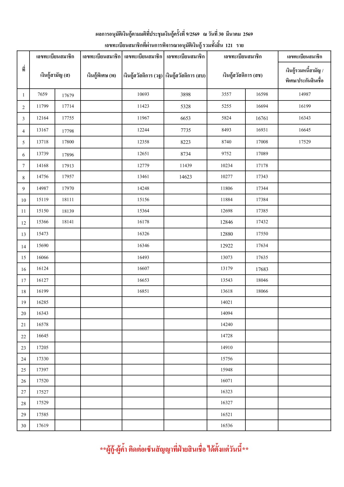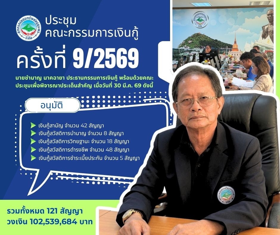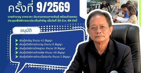 ผลการอนุมัติเงินกู้ตามมติที่ประชุมเงินกู้ครั้งที่ 9/2569 ณ วันที่ 30 มีนาคม 2569