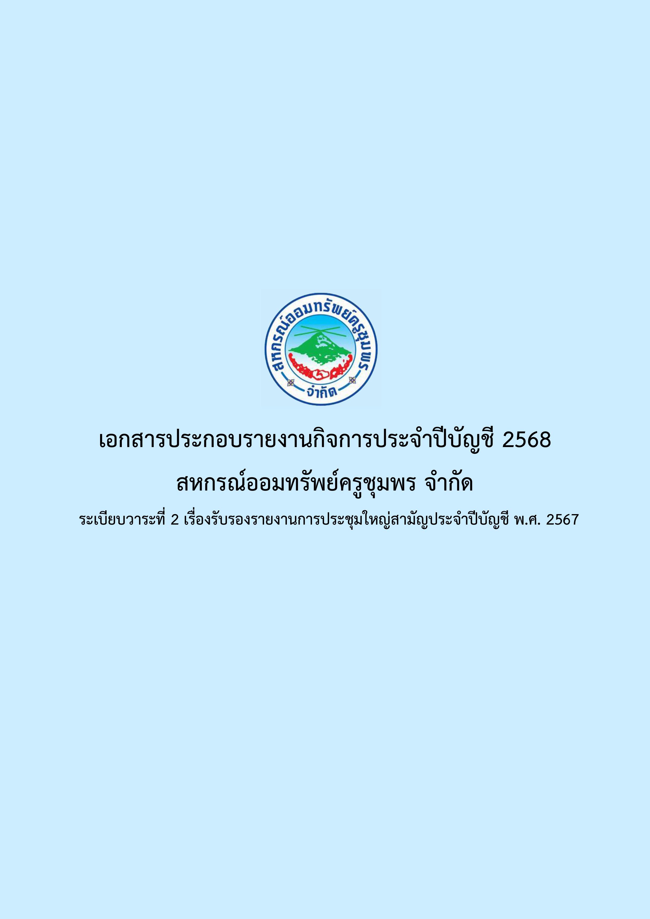 รายงานกิจการประจำปีบัญชี 2568 สหกรณ์ออมทรัพย์ครูชุมพร จำกัด