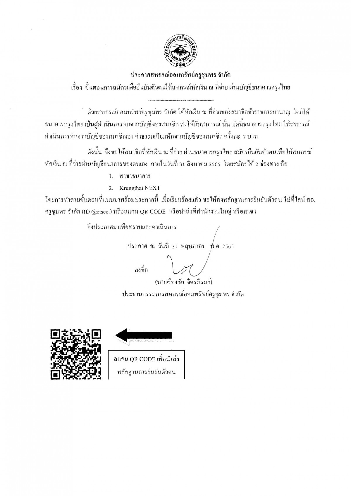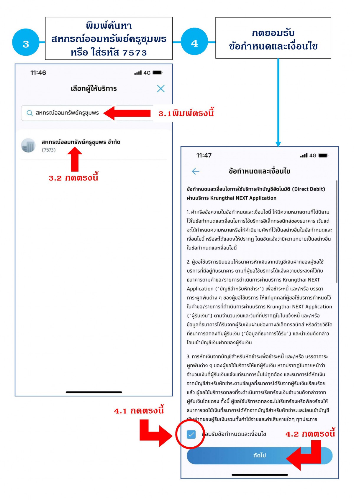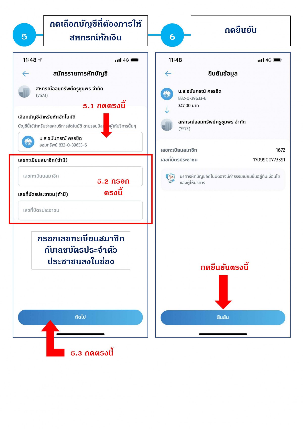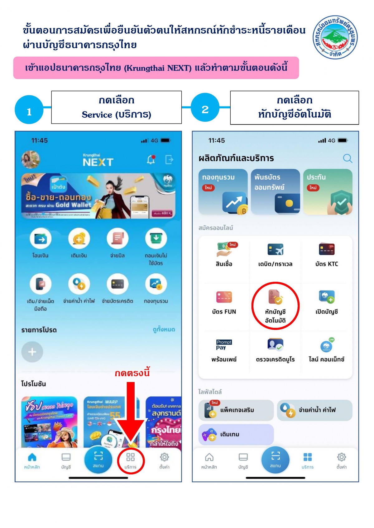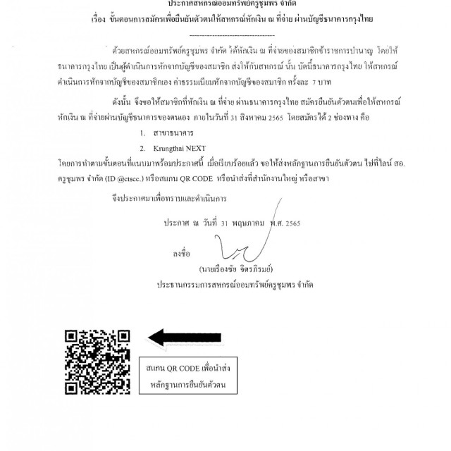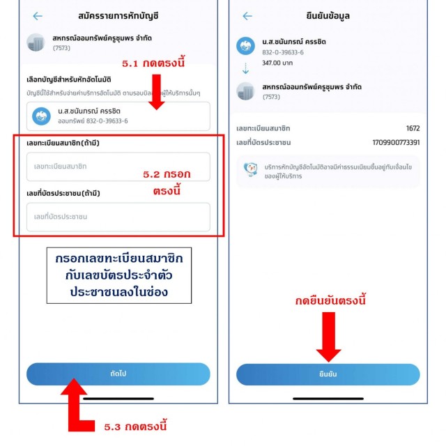 ขั้นตอนการสมัครเพื่อยืนยันตัวตนให้สหกรณ์หักเงิน ณ ที่จ่าย ผ่านบัญชีธนาคารกรุงไทย