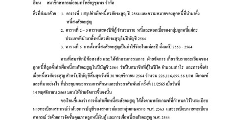 ชี้แจงลูกหนี้ที่ถูกตั้งค่าเผื่อหนี้สงสัยจะสูญในปีบัญชี 2564 และ การตั้งหนี้สงสัยจะสูญเป็นค่าใช้จ่ายตั้งแต่ปี 2553-2564