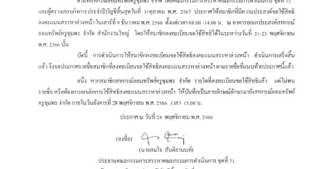 ภายในวันอังคารที่ 28 พฤศจิกายน พ.ศ. 2566 เวลา 15.00 น.