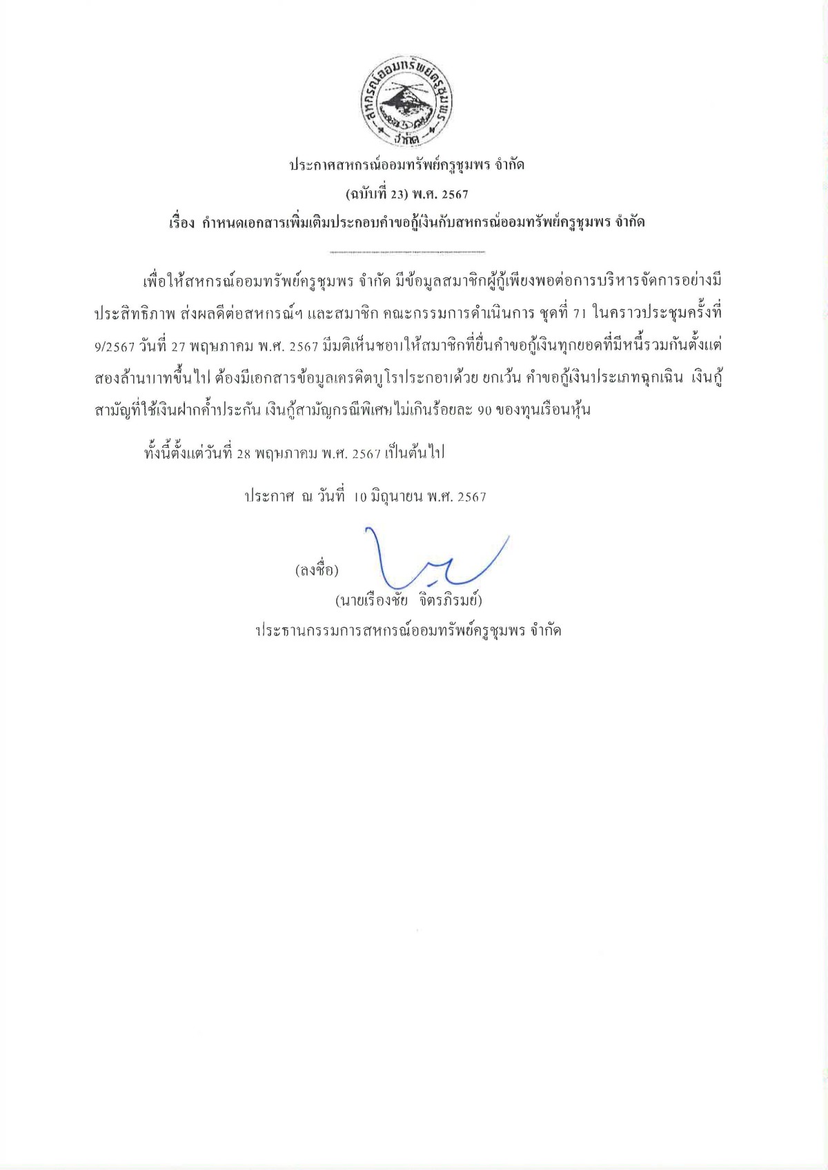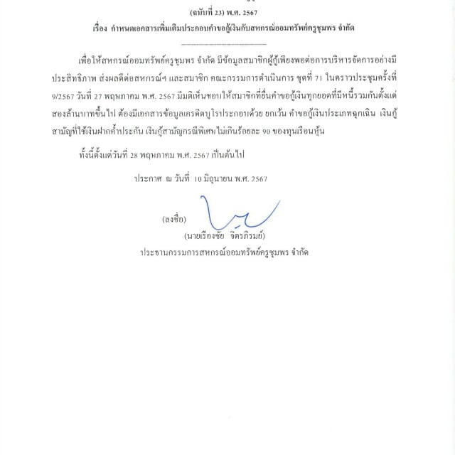 กำหนดเอกสารเพิ่มเติมประกอบคำขอกู้เงินกับสหกรณ์ออมทรัพย์ครูชุมพร จำกัด