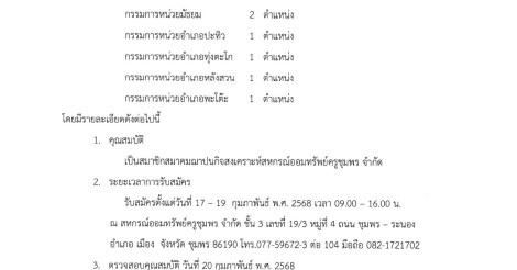 เปิดรับสมัครกรรมการดำเนินการของสมาคมฌาปนกิจสงเคราะห์ สหกรณ์ออมทรัพย์ครูชุมพร จำกัด