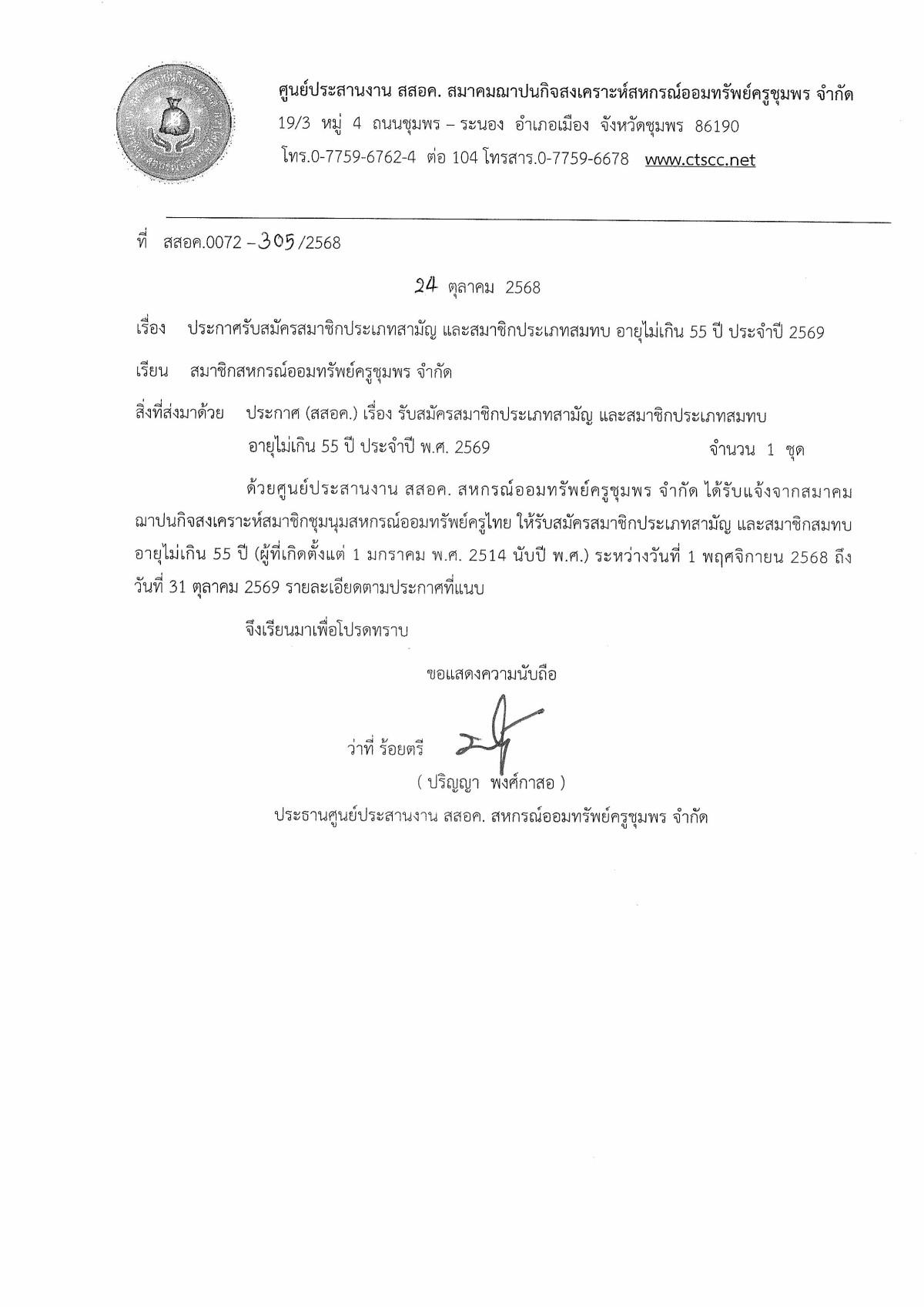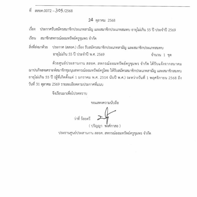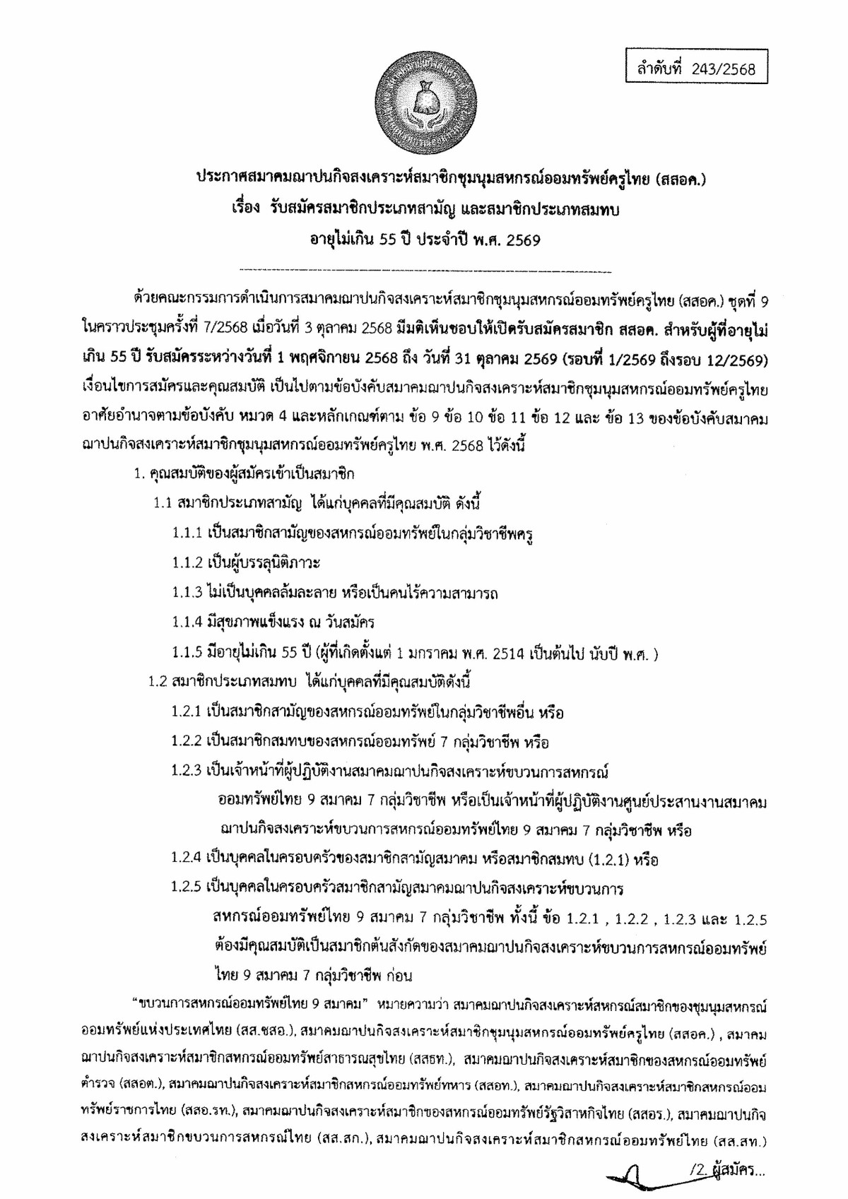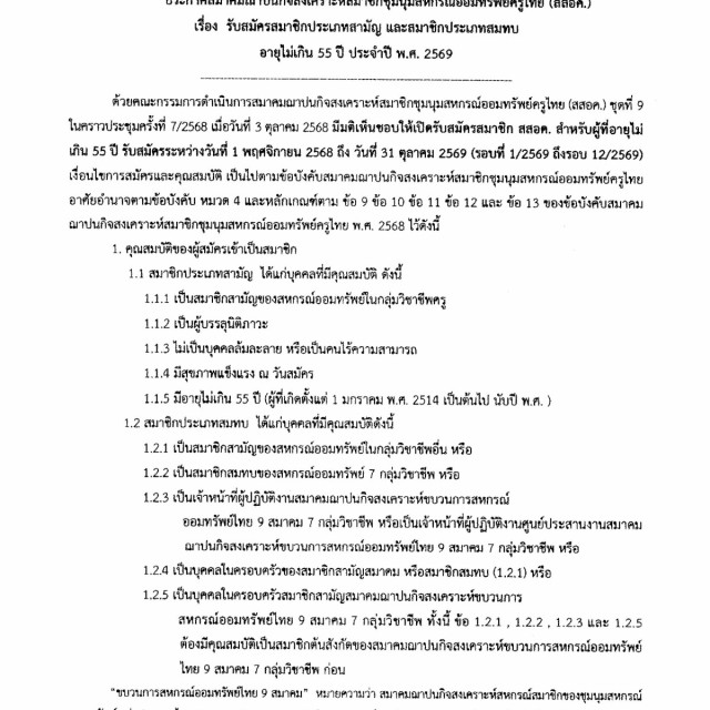สสอค.รับสมัครสมาชิกประเภทสามัญ และสมาชิกประเภทสมทบ อายุไม่เกิน 55 ปี ประจำปี พ.ศ. 2569
