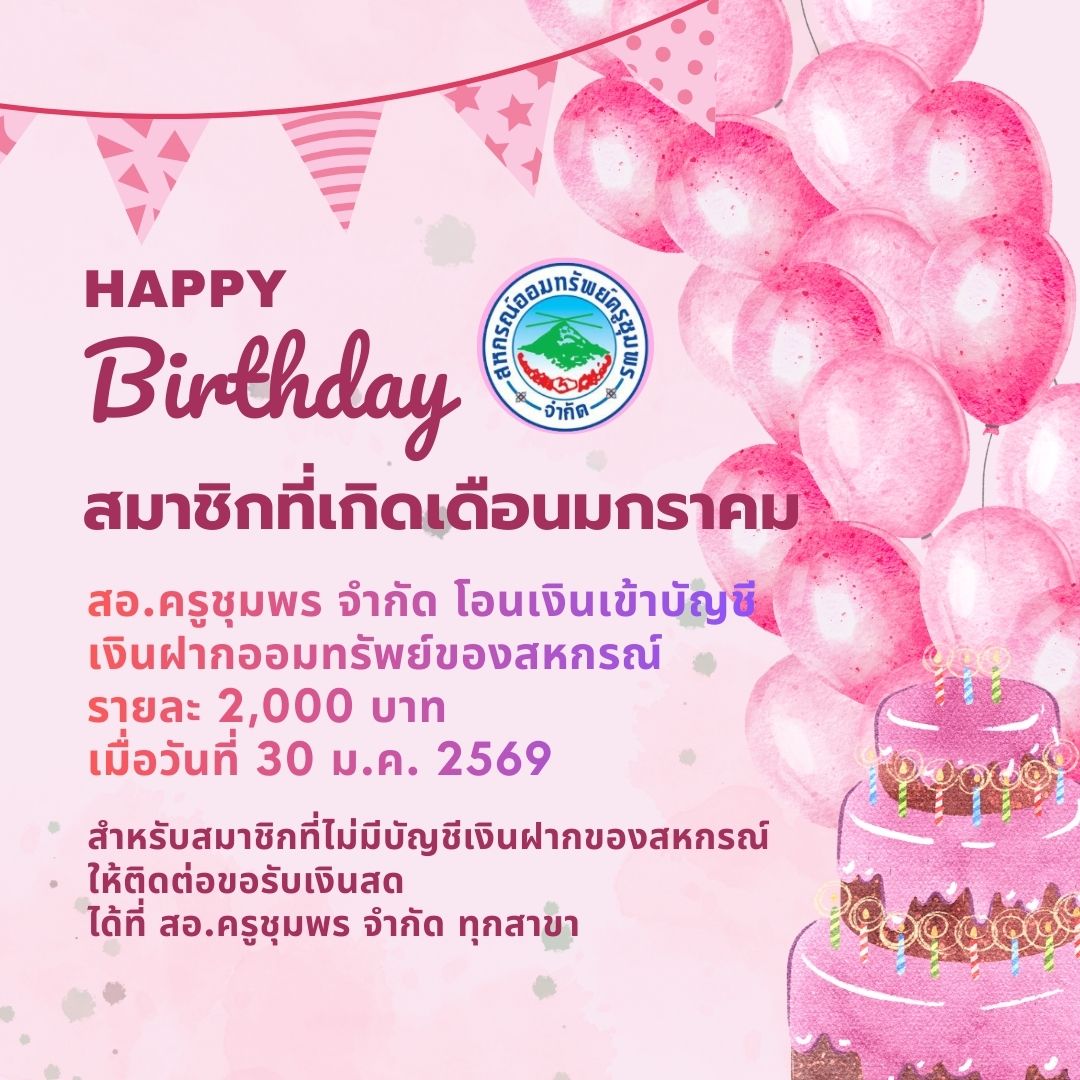 สวัสดิการปันสุขวันเกิด ประจำปีบัญชี 2569 (เดือนมกราคม 2569)