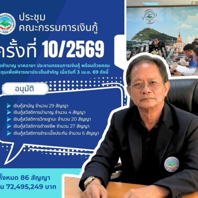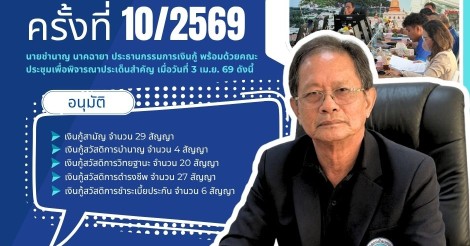 ผลการอนุมัติเงินกู้ตามมติที่ประชุมเงินกู้ครั้งที่ 10/2569 ณ วันที่ 3 เมษายน 2569