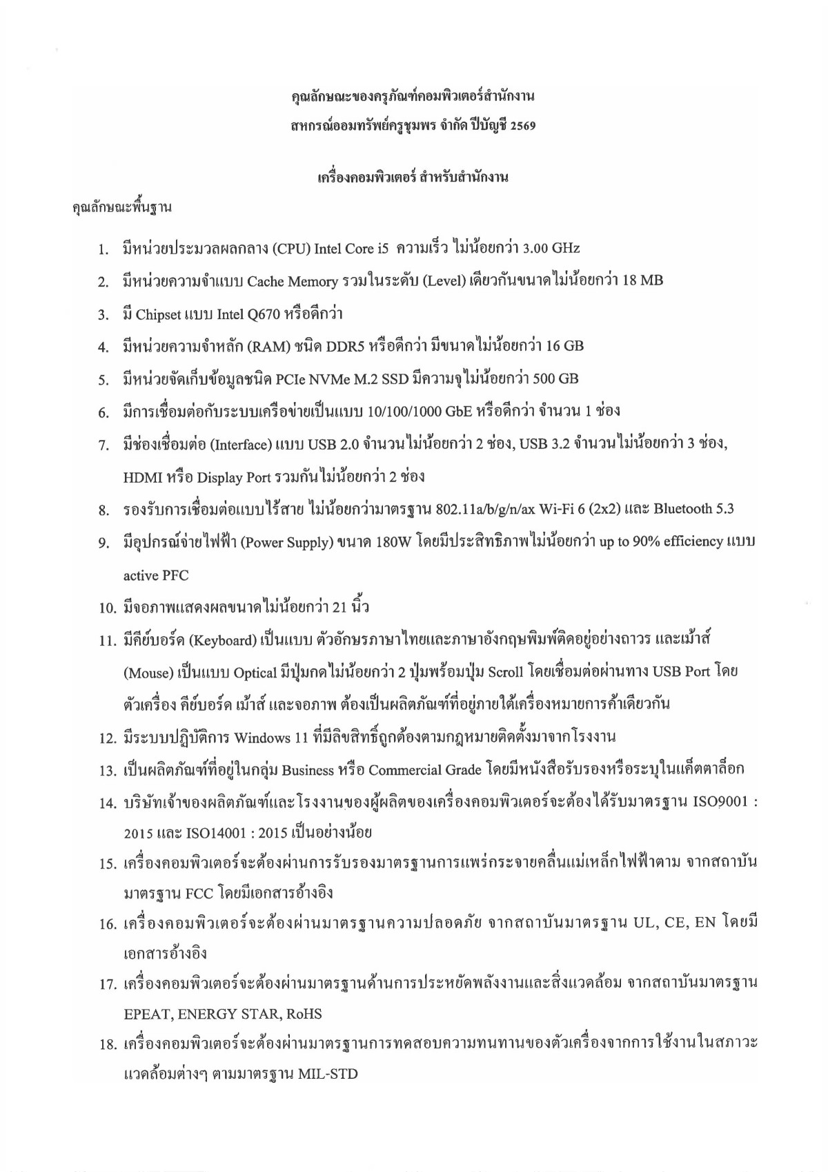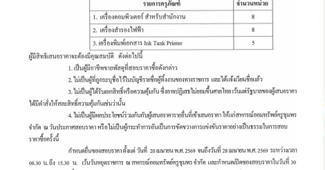 สอบราคาครุภัณฑ์คอมพิวเตอร์สำหรับสำนักงานและอุปกรณ์ ประจำปีบัญชี 2569