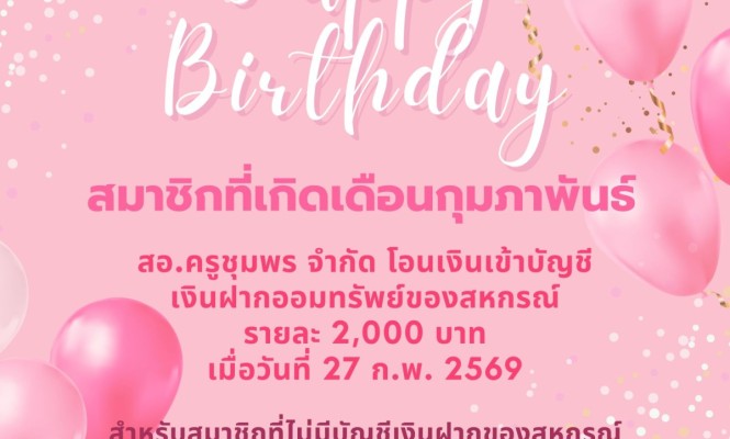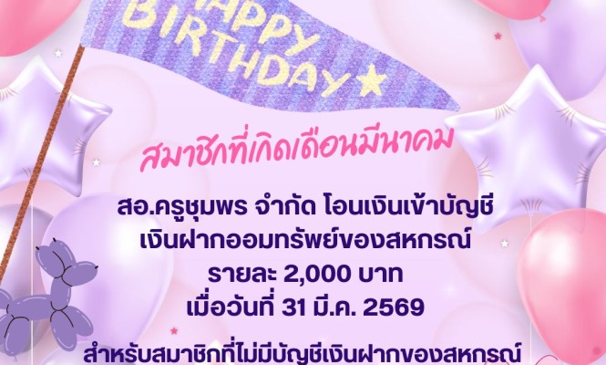 เมื่อวันจันทร์ที่ 3 กุมภาพันธ์ พ.ศ. 2568 สหกรณ์ออมทรัพย์ครูชุมพร จำกัด ประกอบด้วย นางสาวพรพรรณ์ พรมส...